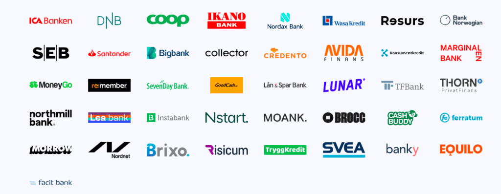 Lendo samarbetar med både stora banker och mindre långivare. Nedan ser du en printscreen från lendo.se över samarbetspartners: