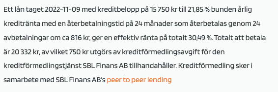 | Lånetyp | Snabblån/Privatlån |