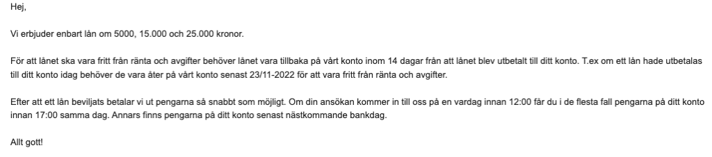 Oavsett om du behöver ett lån eller inte kan det vara en bra idé att läsa igenom en del på hemsidan för att få en del smarta tips. I övrigt är låneansökan väldigt simpel och innehåller inget onödigt krångel.