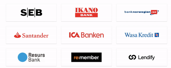 Zmarta har samarbete med över 35 banker och långivare. När du gör en ansökan hos Zmarta får du ett låneerbjudande från alla dessa.