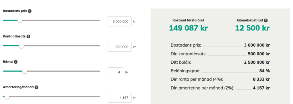 Många väljer att låna så mycket som möjligt. Men kom ihåg att desto mindre du lånar desto lägre månadskostnad behöver du betala samtidigt som du kan återbetala lånet snabbare.