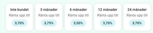 Avanza erbjuder också sparkonton – från ingen bindningstid upp till två års bindningstid.