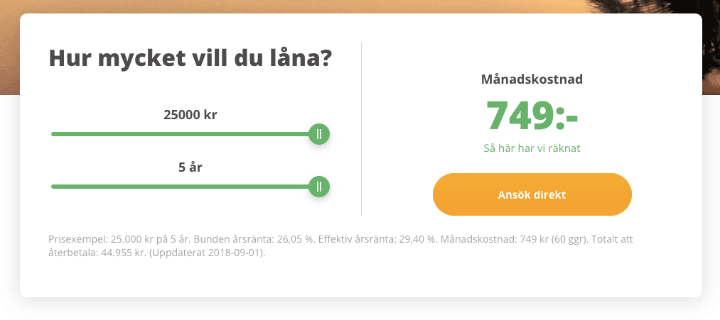 | Lånebelopp | 5 000 kr – 25 000 kr |
