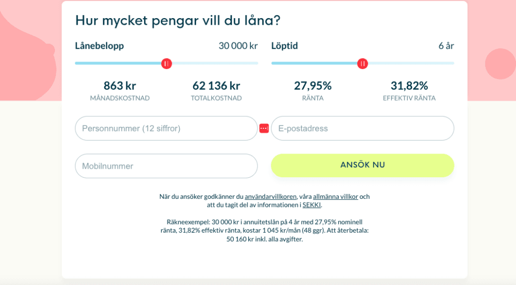 Enkel ansökningsprocess och snabb utbetalning (1-2 dagar). Saknar dock kundomdömen på externa plattformar som Trustpilot och begränsat till mindre lånebelopp.