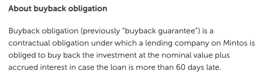 Ett avtal där långivare måste betala tillbaka obetalda skulder till Mintos inom 60 dagar. Kapitalet går sedan till alla investerare.