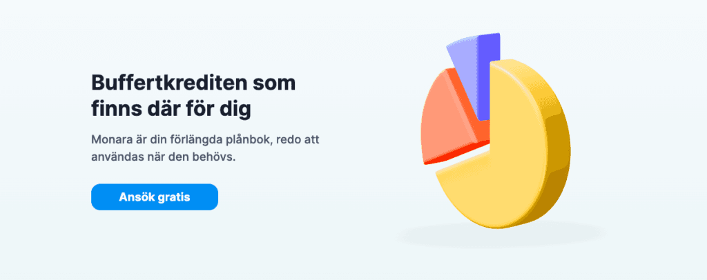 Monara erbjuder en kontokredit på 1000 kr - 30 000 kr med en flexibel återbetalningstid. Du måste dock amortera en viss summa varje månad beroende på hur mycket du lånat.