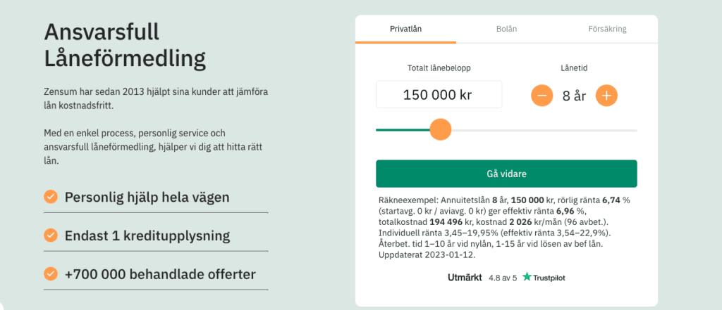 Lånebelopp upp till 600 000 kr för privatlån och även bolån. Flexibla löptider (1–15 år för lån, varierande för bolån). Krävande krav: BankID, UC, SwedSec.